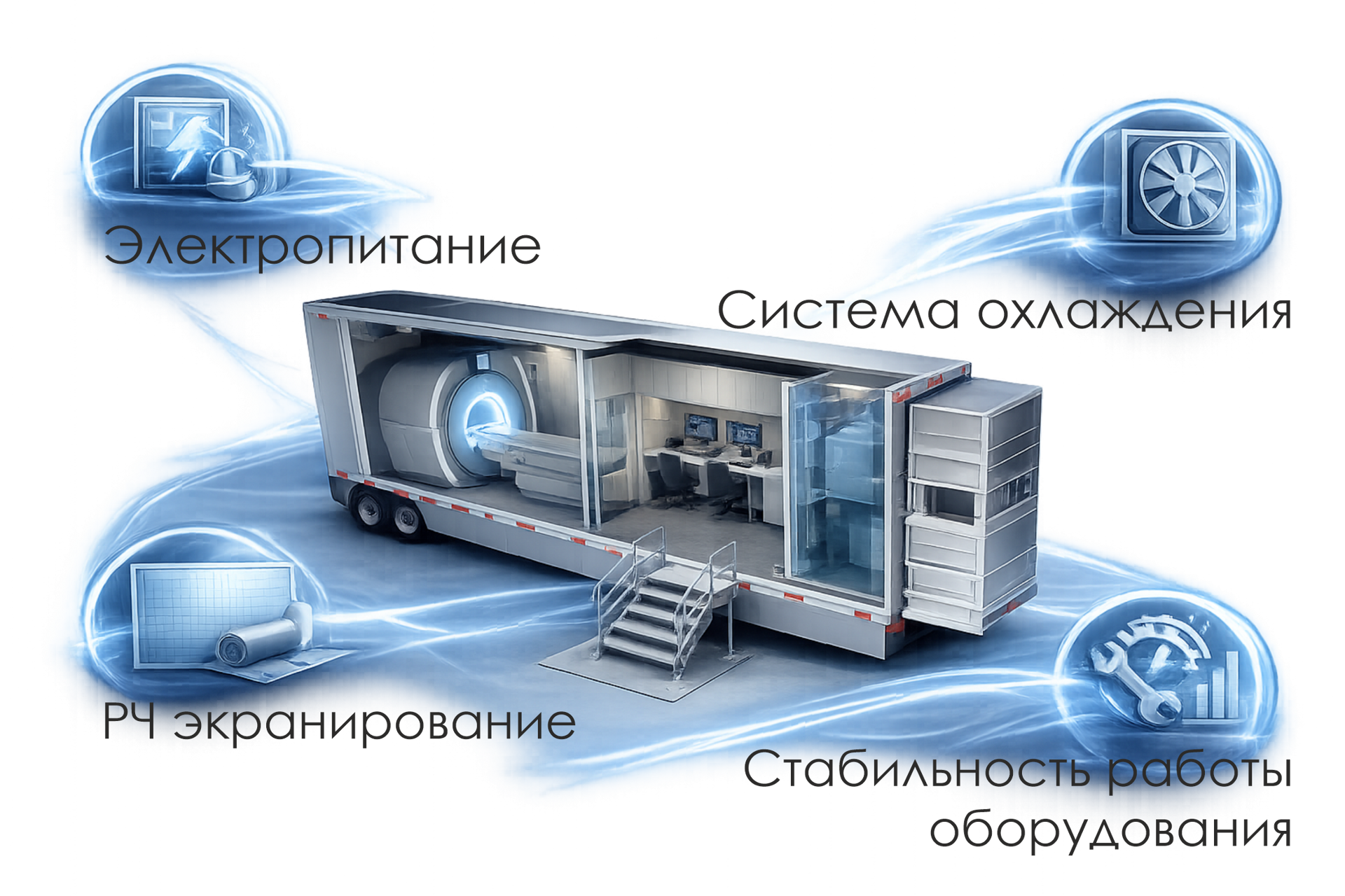 Мобильный МРТ кабинет может использоваться как временное решение, так и как постоянная инфраструктура. В ряде случаев модульные здания применяются при расширении клиники, запуске нового направления или размещении оборудования в условиях ограниченной инфраструктуры.